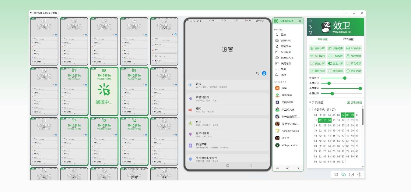 支持最多40台设备同时控制,一键完成批量安装APK、清缓存、同步文件、系统更新等操作。实测显示,传统方式为10台手机安装应用需1小时,而效卫投屏仅需5分钟,人力成本直降90%。